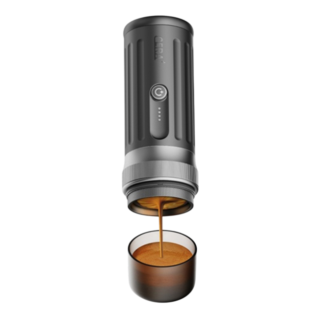 Ongekende kracht. Volledige vrijheid. De Cerapresso heeft een 13500 mAh batterij, verwarmt water in 150 seconden en zet tot 8 kopjes koffie op één lading.