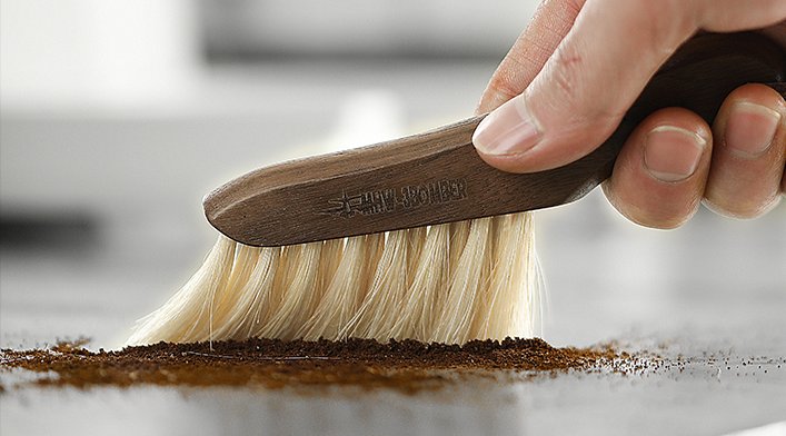 Dankzij de compacte vorm ligt de borstel prettig in de hand en kun je nauwkeurig werken rondom apparatuur en accessoires. Het formaat maakt het eenvoudig om gemalen koffie van werkbladen, molens of tampingstations te verwijderen zonder dat resten zich verder verspreiden.