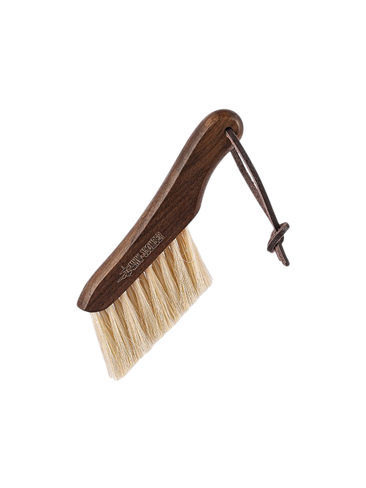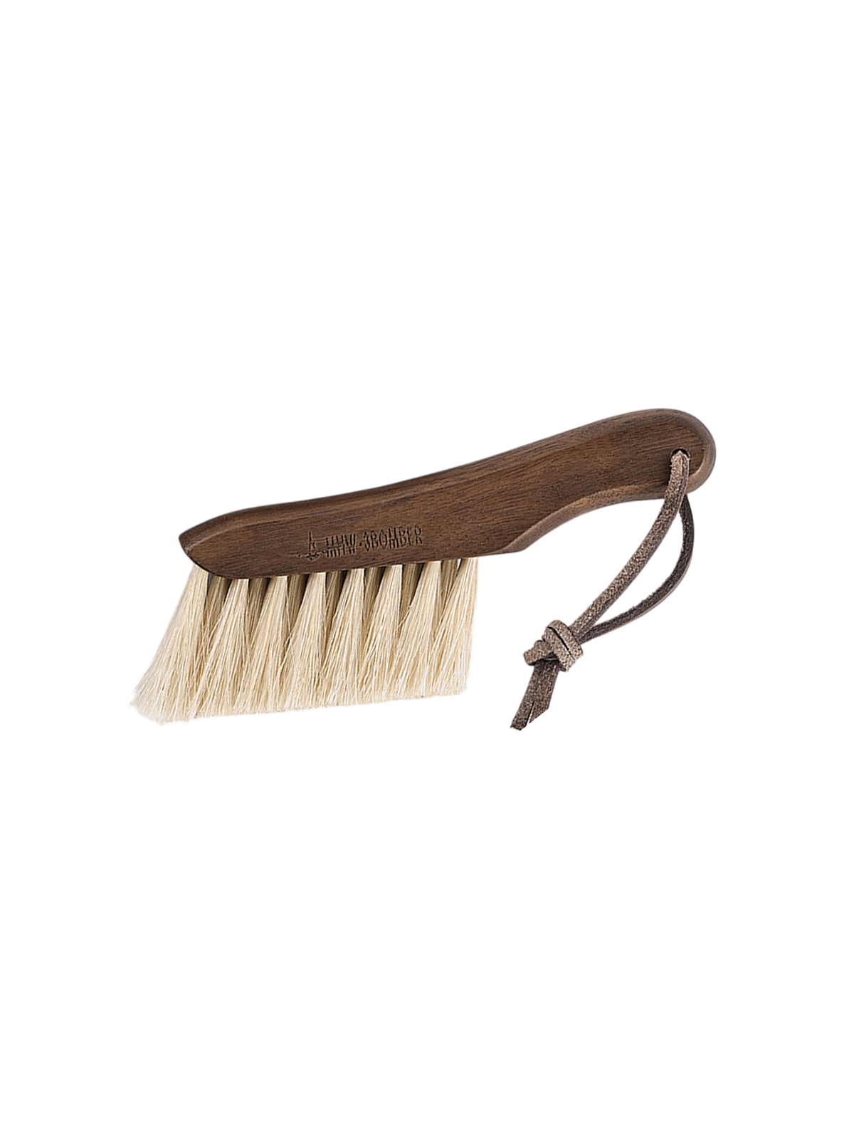 De borstel combineert een handvat van massief walnoothout met natuurlijke paardenharen. Deze haren zijn stevig genoeg om koffieresten, gemalen koffie en fijn stof los te maken, terwijl ze tegelijk zacht genoeg blijven om oppervlakken niet te beschadigen. Hierdoor is de borstel geschikt voor het reinigen van gevoelige onderdelen zoals koffiemolens en portafilters.