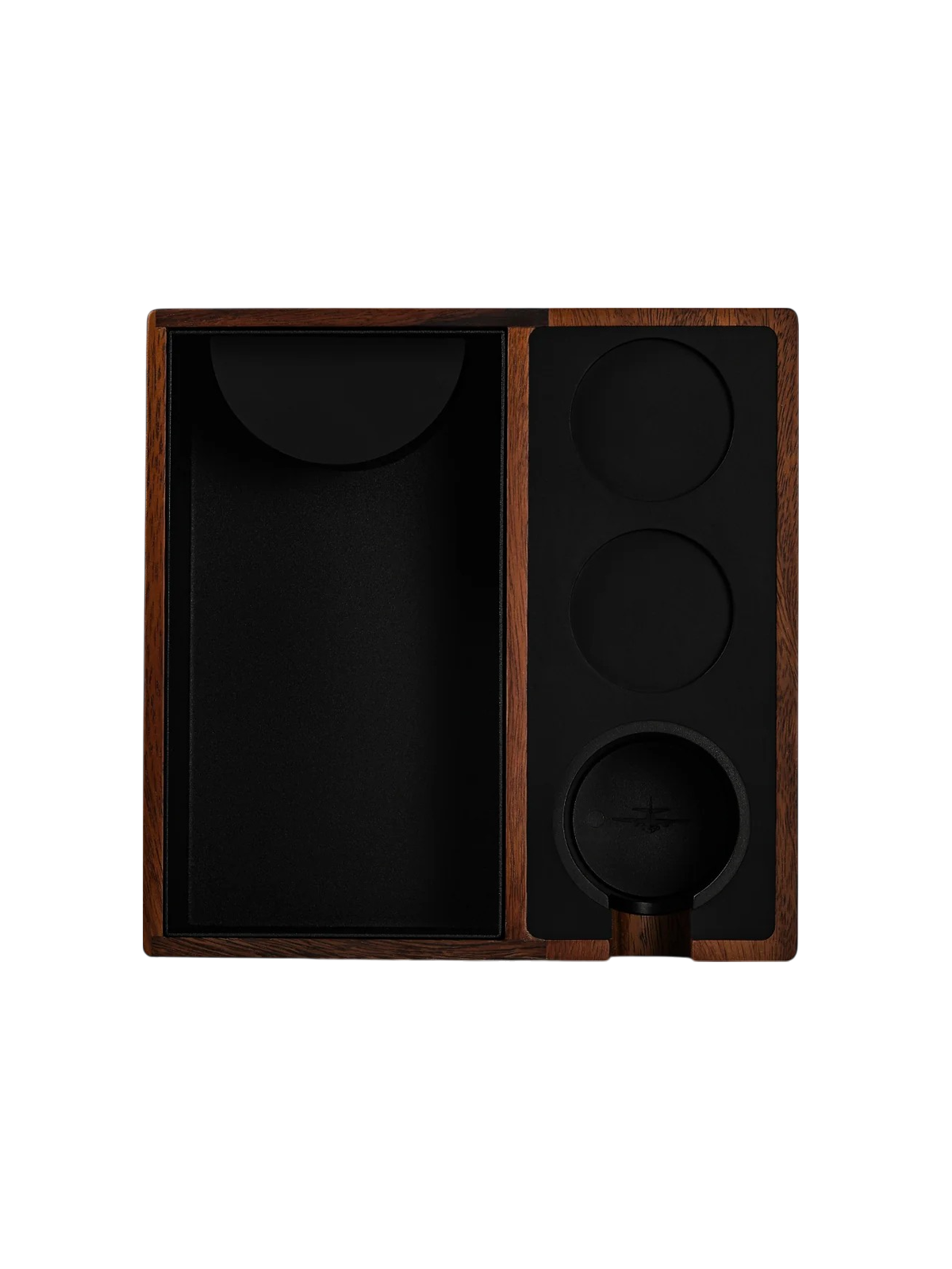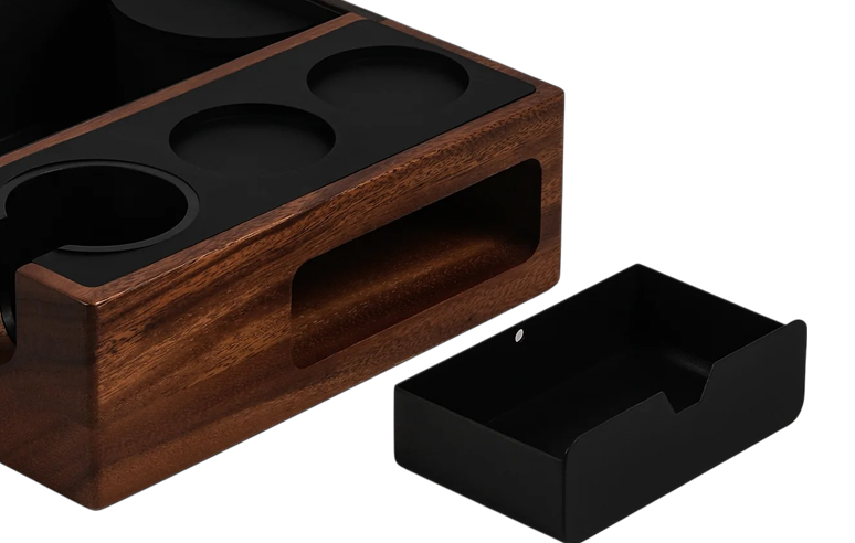Het bovenoppervlak is voorzien van siliconen pads die impact op het portafilter verminderen en je accessoires beschermen tegen krassen. In de geïntegreerde magnetische schuiflade kun je kleine tools opbergen, zoals een puck screen, filterbakjes of andere barista-accessoires.