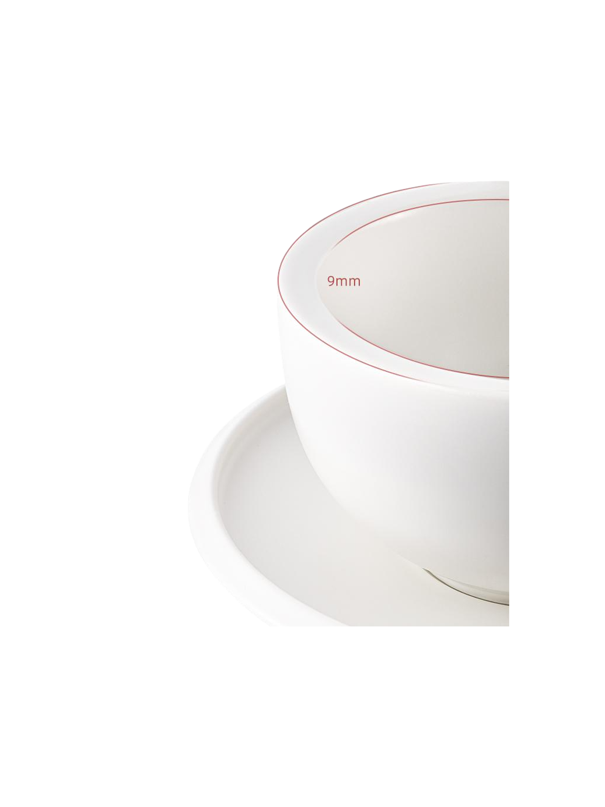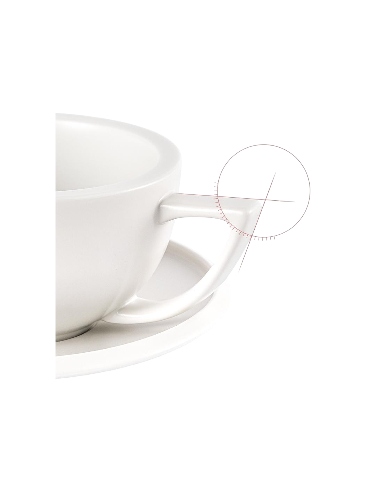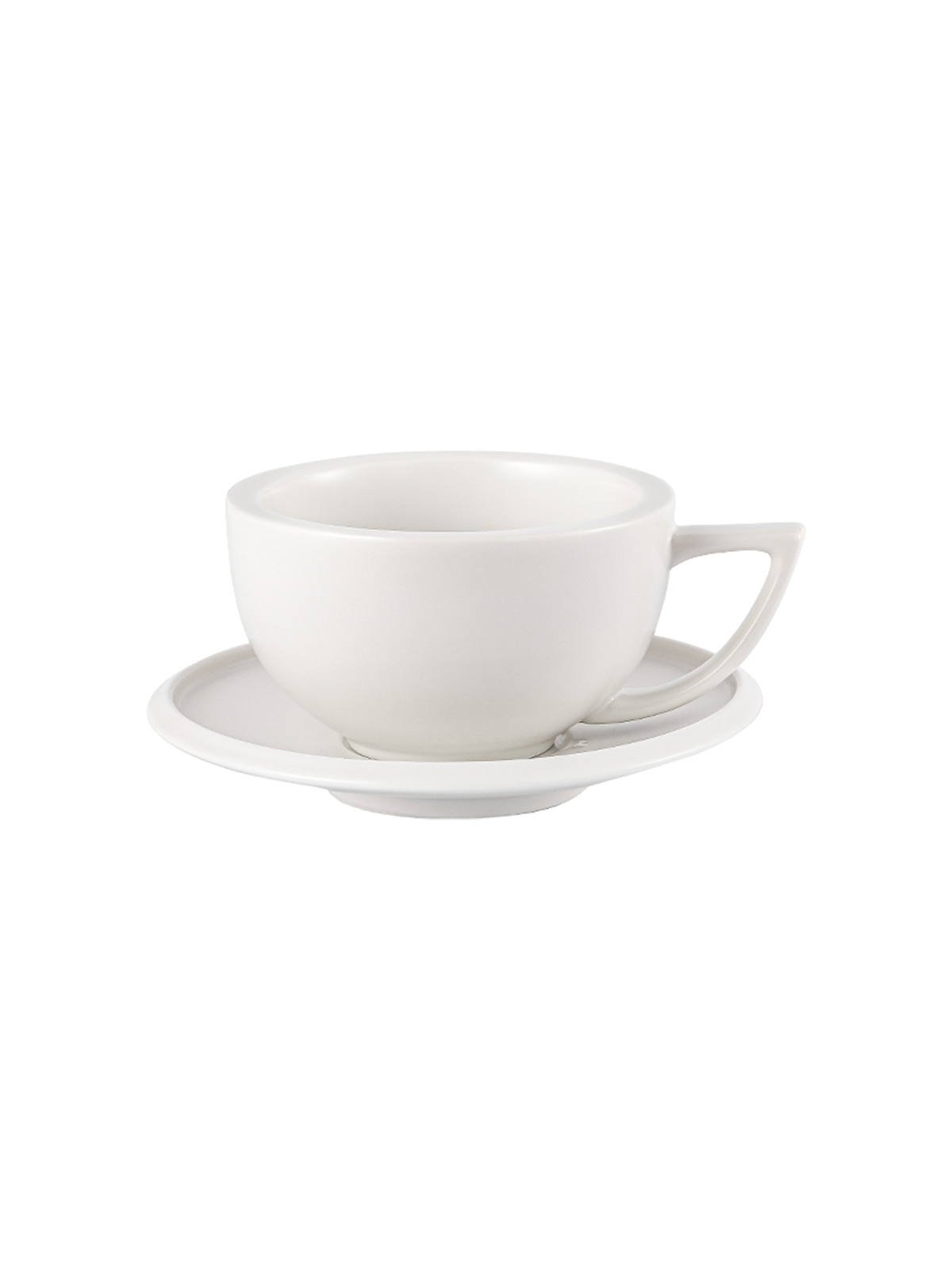 De koffiekop is verkrijgbaar in verschillende kleuren, waaronder zwart, wit, meidoornrood, abrikoos, tiffany-blauw, berlijns blauw en grijs. Een bijpassende schotel zorgt voor een complete presentatie, waardoor de set geschikt is voor zowel thuisgebruik als horecaomgevingen.