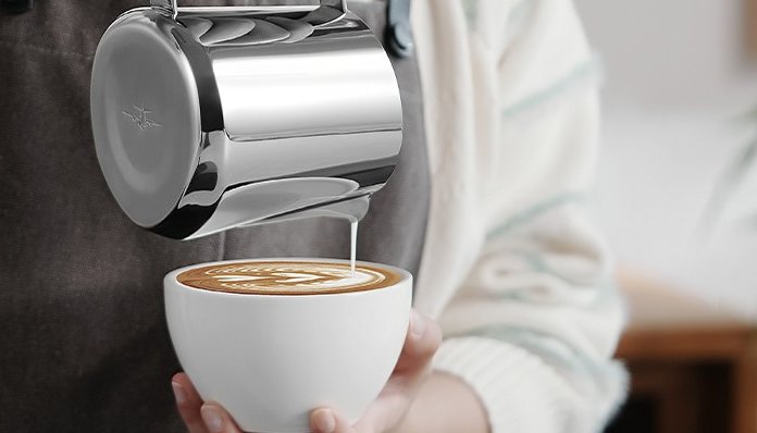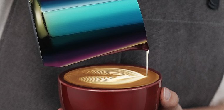 De brede vorm van de kan helpt om een sterke melkrotatie te creëren tijdens het opschuimen. Hierdoor mengen melk en lucht gelijkmatig, wat resulteert in glad en consistent microschuim dat geschikt is voor latte art.