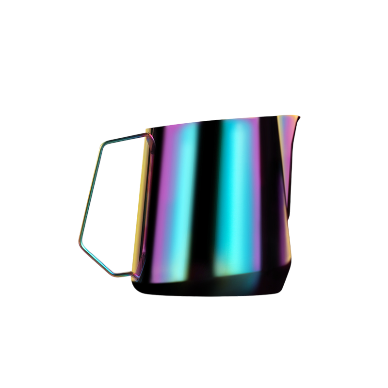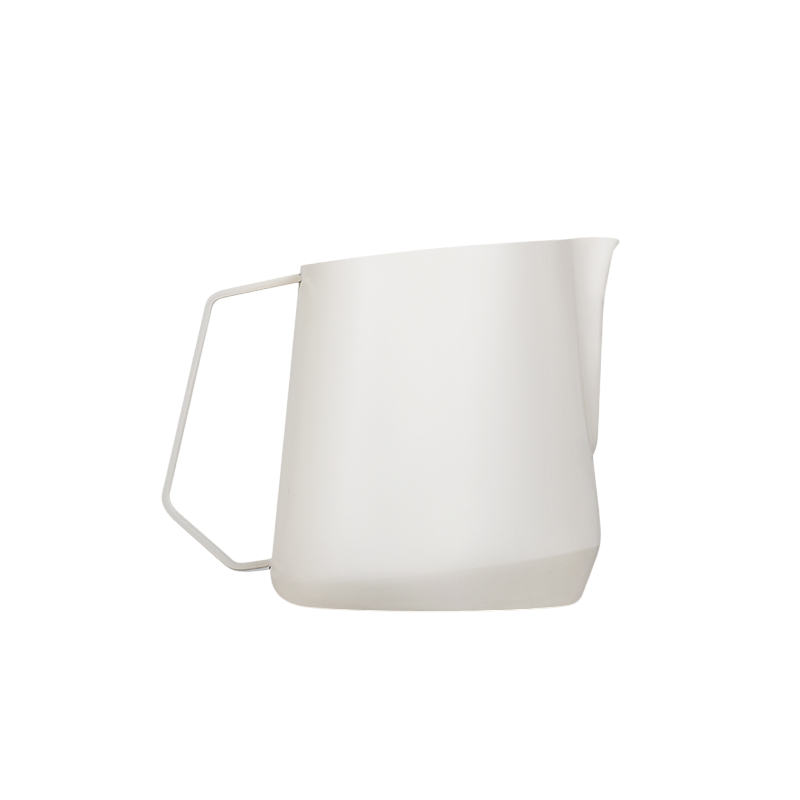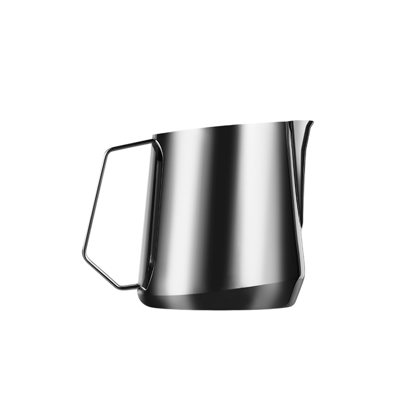 De melkkan heeft een schenktuit met een hoek van 8°, waardoor de tuit dichter bij het koffieoppervlak komt tijdens het schenken. Dit geeft beter zicht op de melkstroom en maakt het eenvoudiger om fijne lijnen en symmetrische patronen te creëren. De U-vormige tuit zorgt daarbij voor een stabiele en goed gecontroleerde doorstroming van de melk.