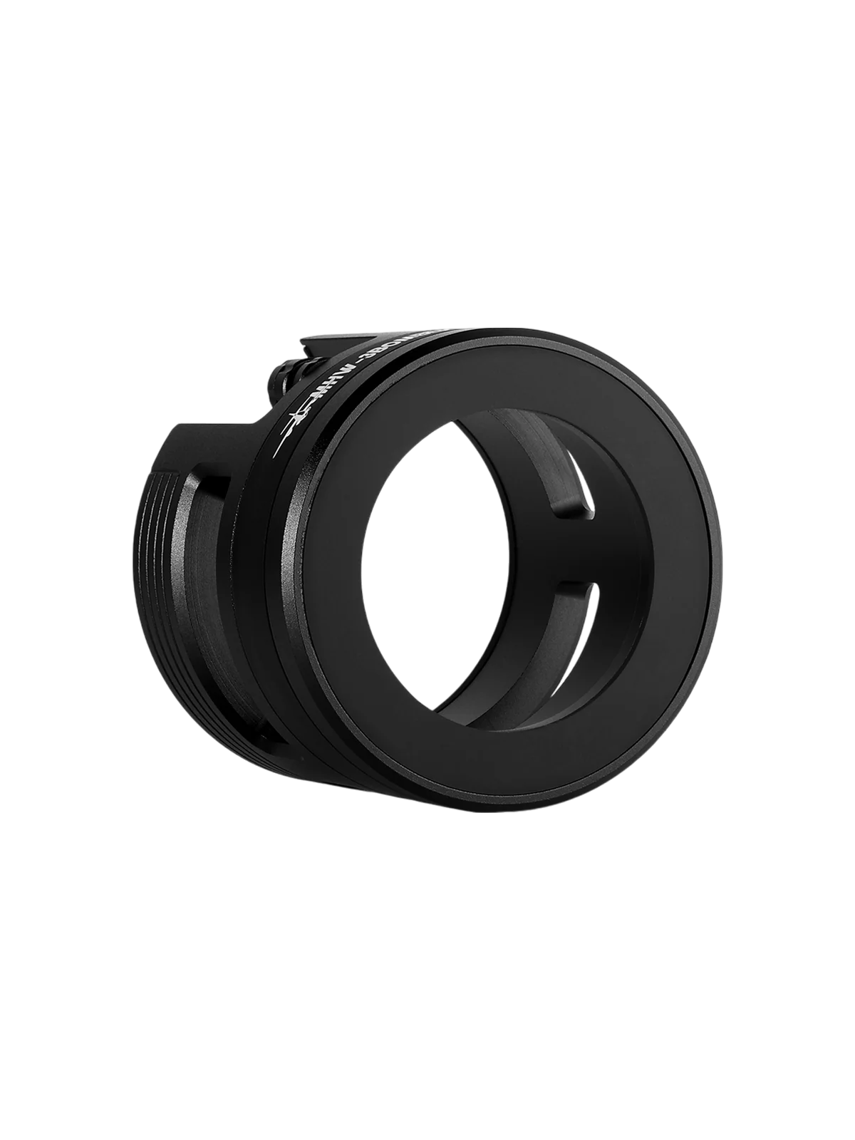 De constructie combineert aluminium en roestvrij staal met een beschermende coating tegen slijtage en corrosie. De cilindervormige behuizing biedt een stevige grip en maakt de houder eenvoudig schoon te houden bij dagelijks gebruik.