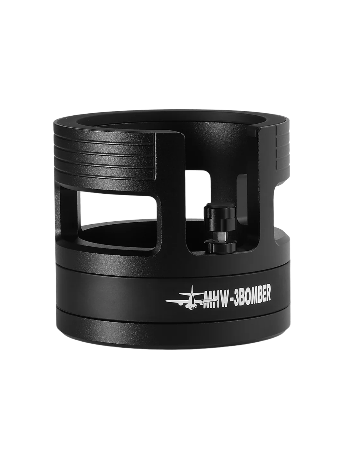 De houder is in hoogte verstelbaar via een siliconen draaiknop waarmee de positie tot ongeveer 12 mm kan worden aangepast. Hierdoor sluit de ondersteuning nauw aan op verschillende portafiltertypes en handvatposities. Dit helpt om de portafilter stabiel te houden tijdens het tampen.