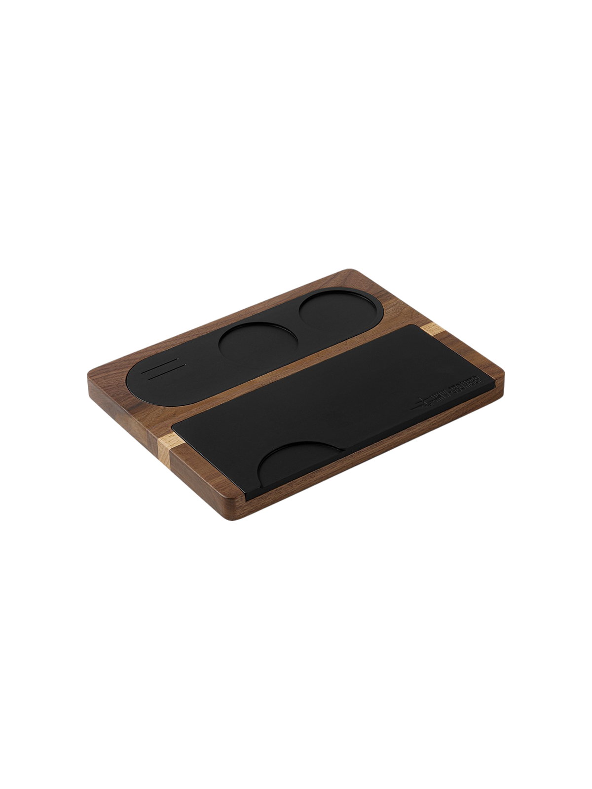 Het station is ontworpen met meerdere opbergposities voor veelgebruikte baristatools. Er is ruimte voor twee tampers of koffieverdelers en twee houders voor puck screens. Hierdoor blijven accessoires georganiseerd en klaar voor gebruik tijdens het bereiden van espresso.
