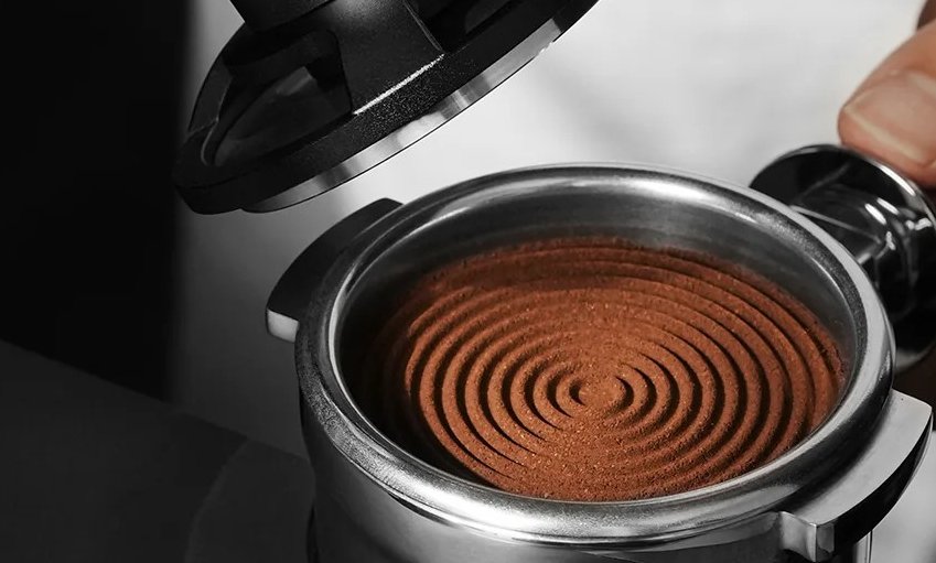 Het drieveermechanisme levert een constante tampdruk van 13,6 kg. Door deze vaste kracht wordt de koffiepuck telkens met dezelfde druk gecomprimeerd, waardoor variaties tijdens het tampen worden verminderd. Dit helpt om een gelijkmatige extractie te bereiken en kanaalvorming te beperken.