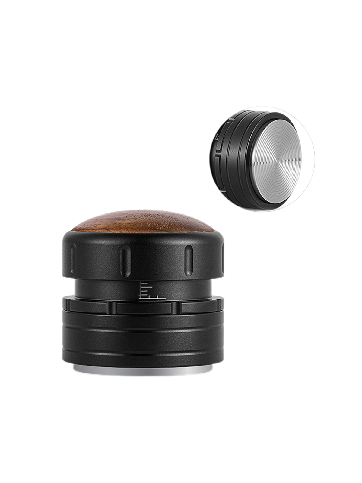 De tampdiepte kan eenvoudig worden aangepast via de roterende middenring. Hiermee stel je de hoogte van de tamper nauwkeurig af op de dosering en de diepte van het filterbakje. De geïntegreerde schaalverdeling helpt om dezelfde instelling telkens opnieuw te gebruiken, wat zorgt voor meer consistentie in de voorbereiding van espresso.