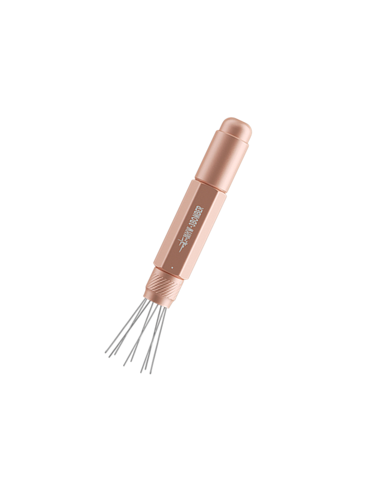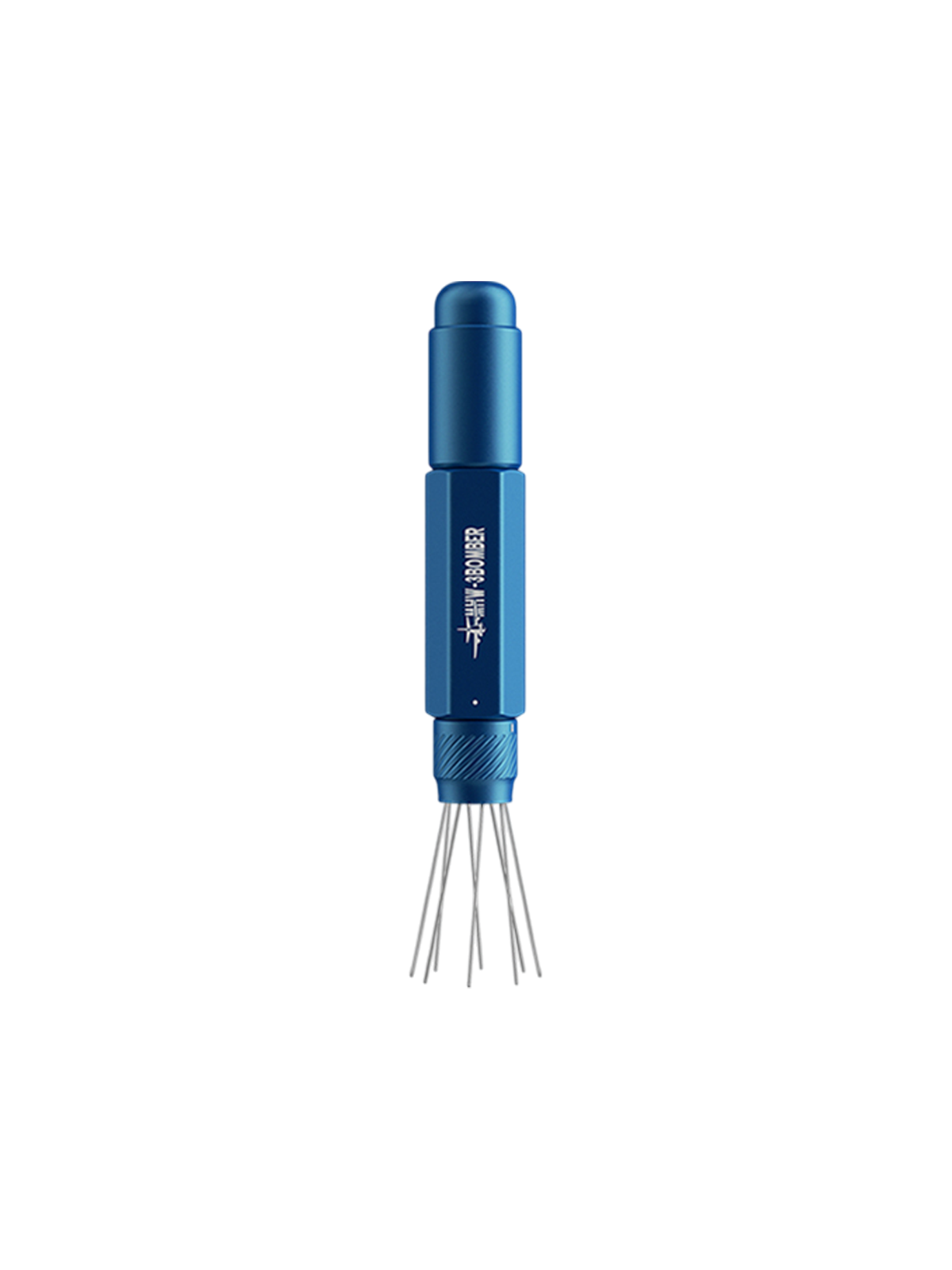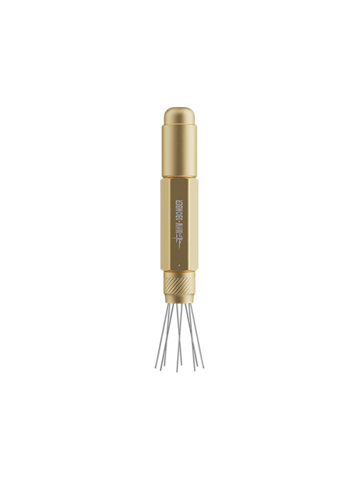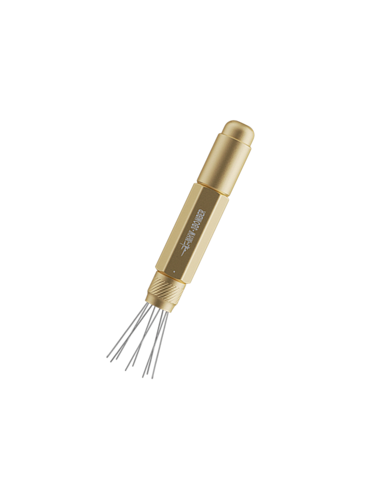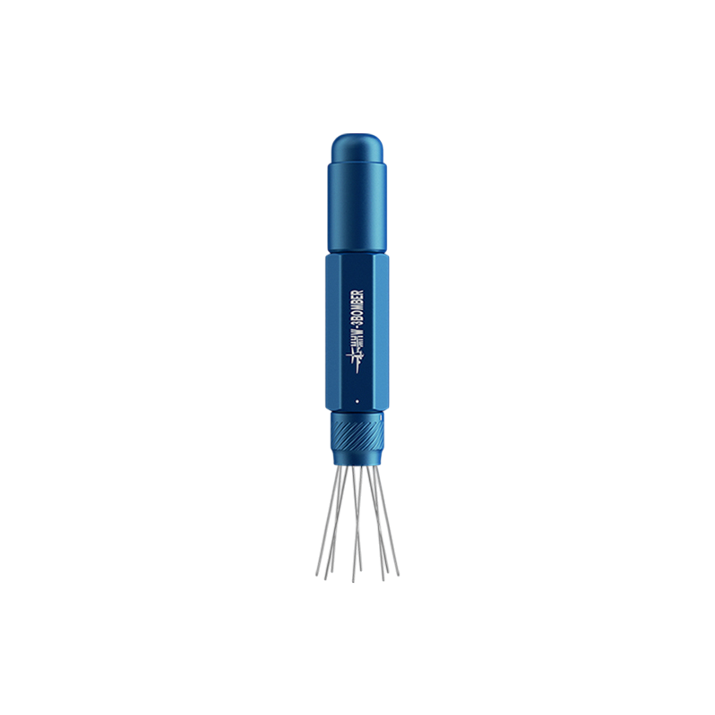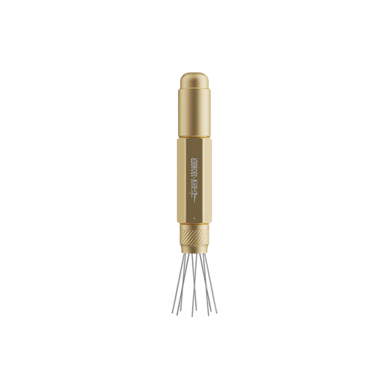 De afstand tussen de naalden kan worden aangepast via een draai-instelring. Hierdoor kan de verdeling worden afgestemd op verschillende maalgroottes en koffiedoseringen, waardoor de tool flexibel inzetbaar blijft voor uiteenlopende espresso-opstellingen.