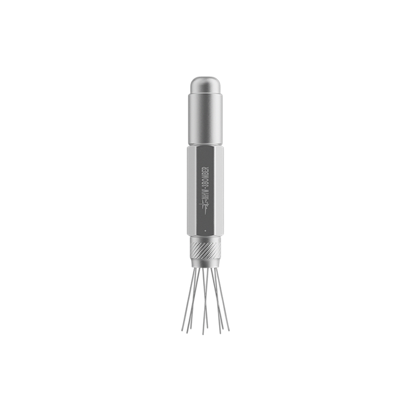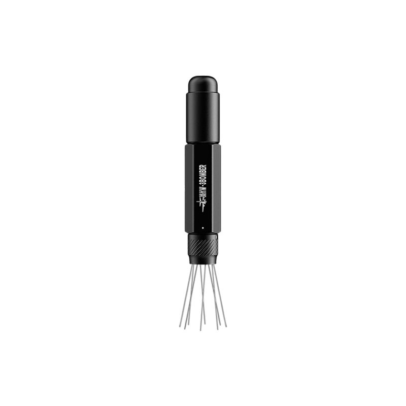 De magnetische behuizing maakt het mogelijk om de tool eenvoudig aan metalen oppervlakken te bevestigen, zoals een espressomachine of werkblad. De zeshoekige vorm voorkomt wegrollen en zorgt voor een stabiele grip tijdens het werken. De constructie van aluminiumlegering en roestvrijstalen naalden maakt de tool duurzaam en geschikt voor langdurig gebruik.