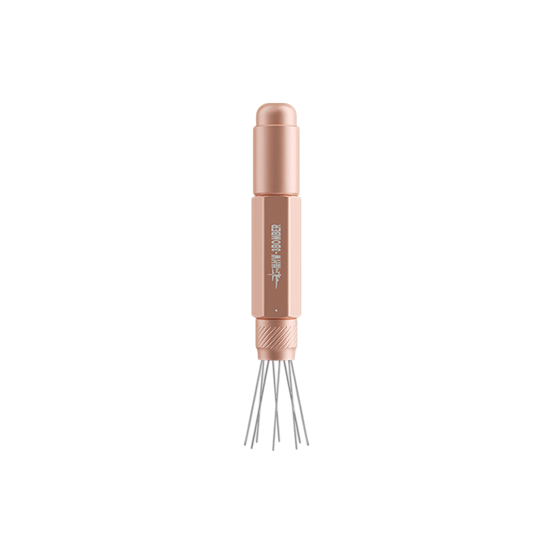 De tool gebruikt fijne naalden om klontjes in de maling los te maken en de koffie gelijkmatig door het filterbakje te verspreiden. Hierdoor kan het water later gelijkmatiger door de koffiepuck stromen, wat helpt om kanaalvorming te verminderen en de extractie consistenter te maken.